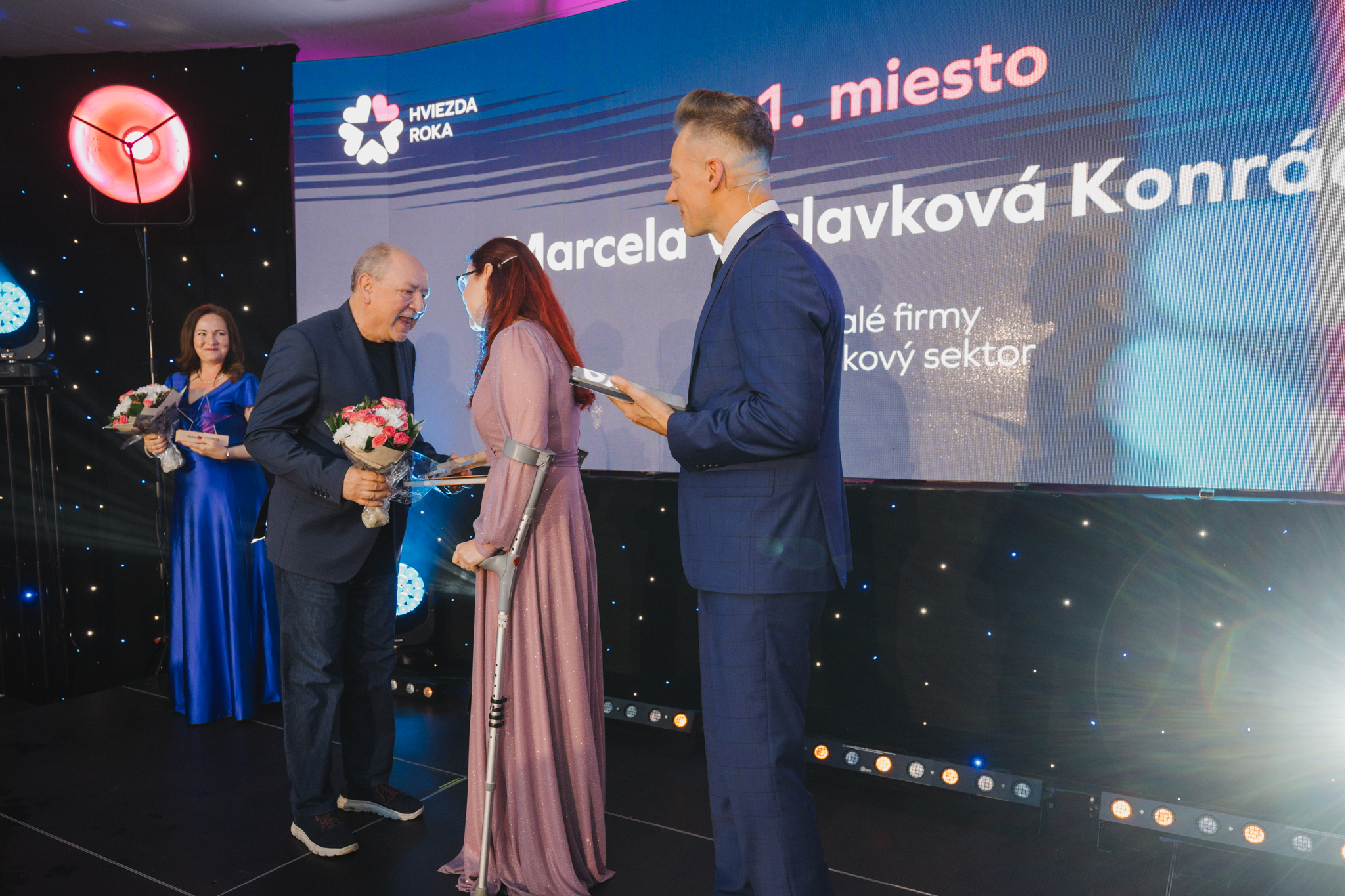 Víťazky kategórie Malé firmy a organizácie, neziskový sektor s porotcom Danielom Hevierom a moderátorom Thomasom Puskailerom. Ešte raz blahoželáme! -