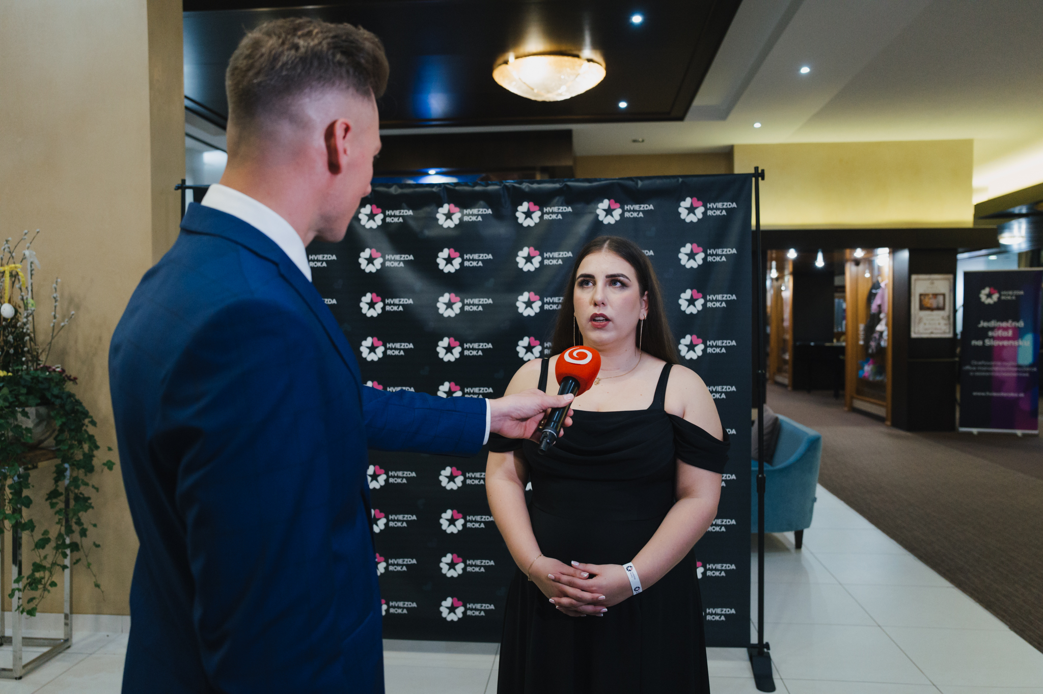 Thomas Puskailer a Tatiana Ondrejková – porotkyňa 1. ročníka, ktorá sa počas galavečera podelila o príbehy, ktoré jej pri výbere hviezd utkveli najviac v pamäti. -